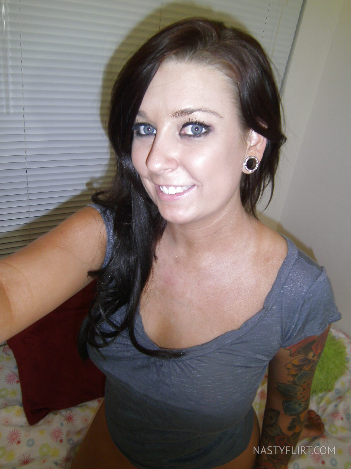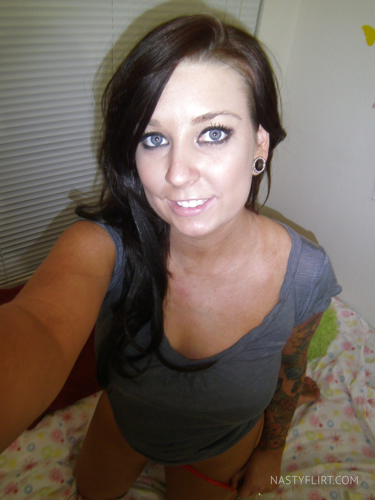 Une magnifique brune aux gros seins solides baisse son string pour dévoiler sa chatte et ses fesses alors qu'elle se penche en avant sur son lit. Une scène érotique à couper le souffle sur Sexefelin.